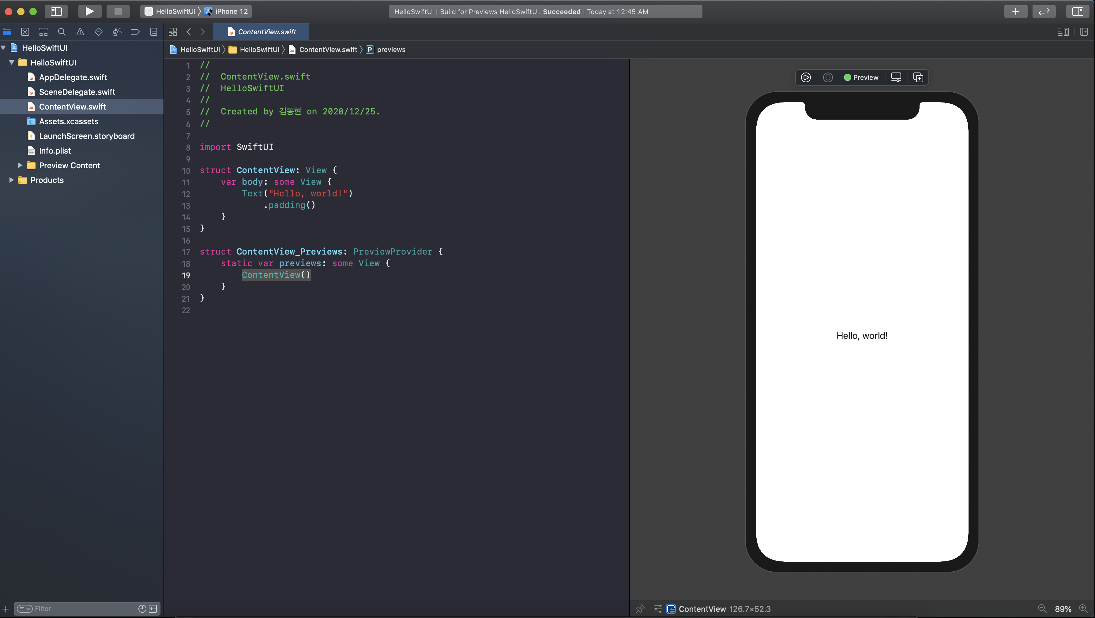 ContentView라는 이름의 swift 파일이 있을것이다.