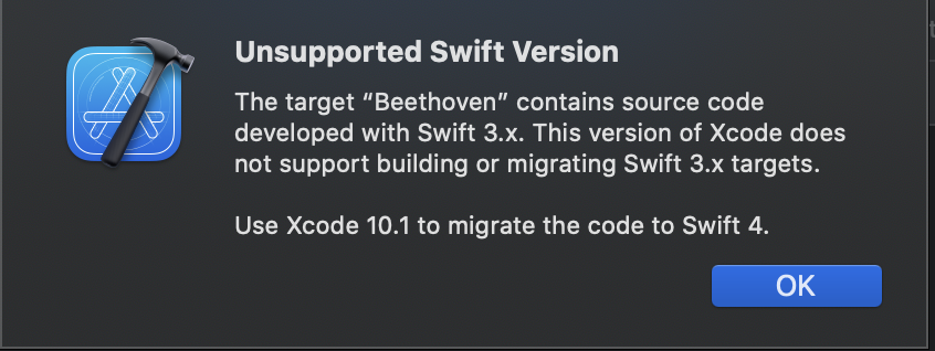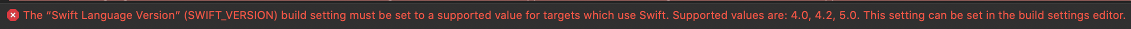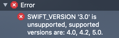 PodFile에 해당 라이브러리 build settings에 들어가서 보면 아래와 같이 Swift 3.0으로 version이 설정되어있는게 보인다.