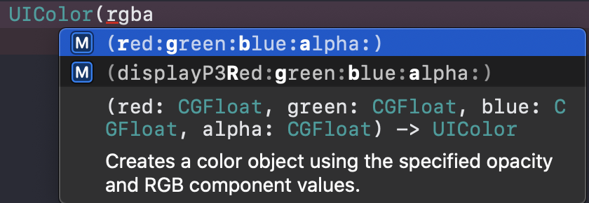 UIColor init중 하나인 하단 이미지를 보면