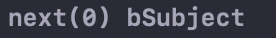 let bSubject = BehaviorSubject<Int>(value: 0) // 명시된 타입에 맞는 초기 이벤트를 초깃값으로 지정하여 Subject 생성