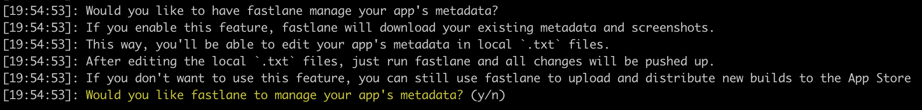 그다음 Fastlane에서 앱의 메타데이터를 관리하도록 할것이냐고 물어본다.
