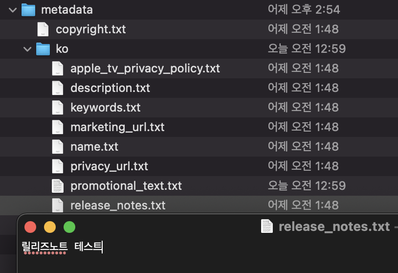 fastlane을 실행하면 메타데이터 변경 사항이 푸시된다.